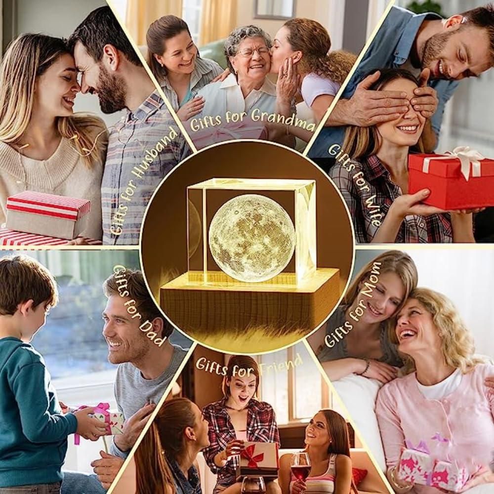 - Night Light in Room - This Crystal moon cube comes with a warm light LED base, they are designed to illuminate and enhance the minutest details, so you can put it in the bedroom as a night light, or put it in the living room, office, or fireplace as a home decoration.